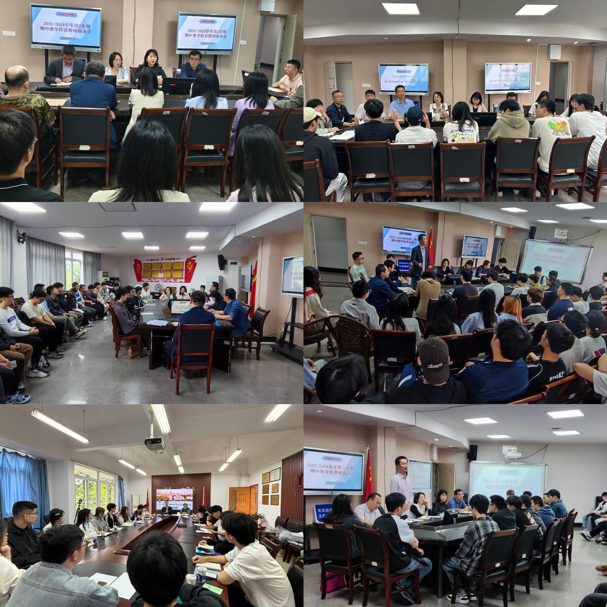 本次期中教学检查座谈会分专业、分年级开展,连续召开6场次。学院领导班子成员、学院督导、系部主任、教务秘书、近三年新进教师、各班同学代表参加了座谈会。