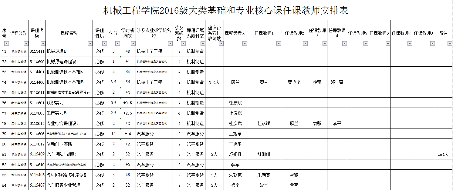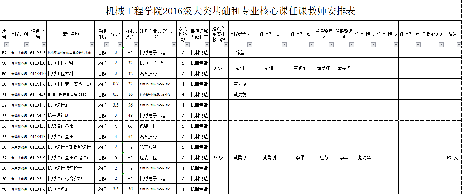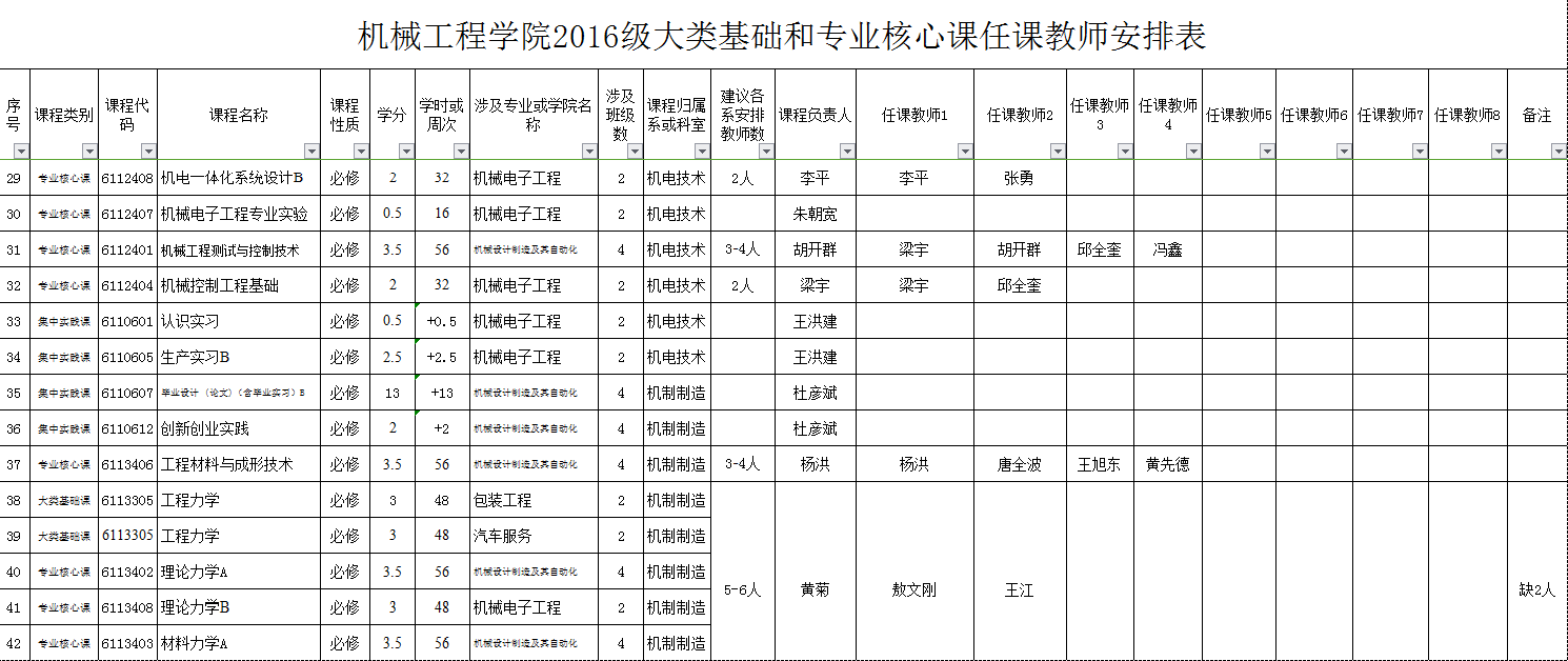 1、鉴于2016级人才培养方案有了新的较大的调整,为实施好相关人才培养计划,通过学院教学指导委员会讨论,并经学院院务会研究,对2016级人才培养方案涉及的大类基础课程及专业核心课程等的教学任务进行了重新安排(具体方案见必赢线路检测3003no1关于教学大纲等修订(编写)的实施方案,机院【2016】第16号)。具体教学任务安排表见附件,各系原则上应按此表落实具体教学任务,请各位教师提前做好有关教学准备。