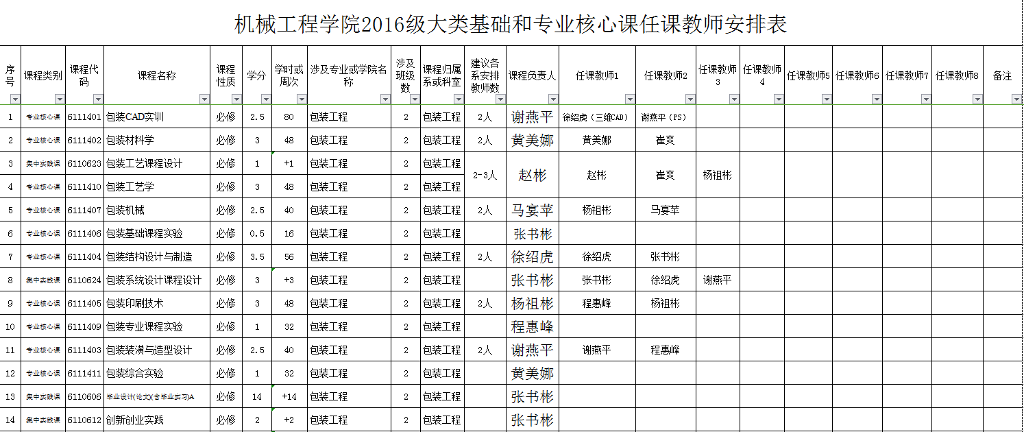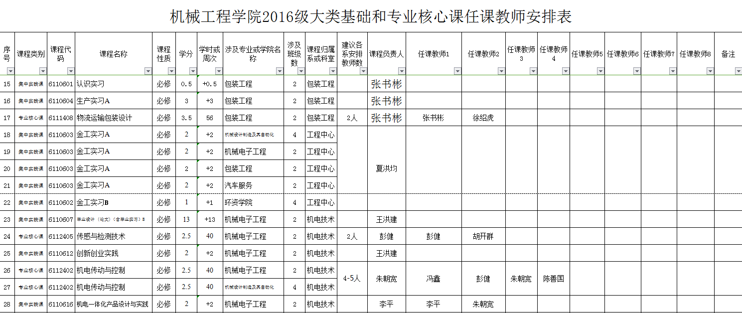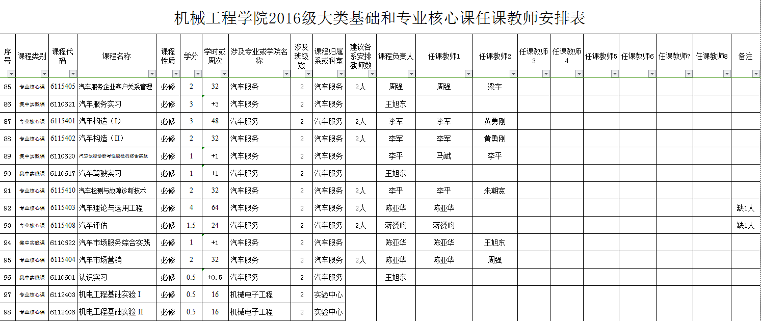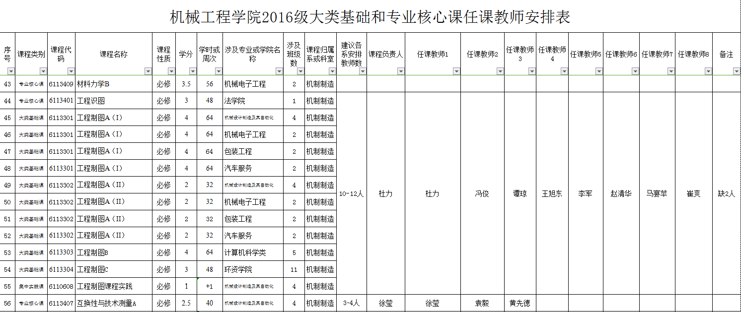 1、鉴于2016级人才培养方案有了新的较大的调整,为实施好相关人才培养计划,通过学院教学指导委员会讨论,并经学院院务会研究,对2016级人才培养方案涉及的大类基础课程及专业核心课程等的教学任务进行了重新安排(具体方案见必赢线路检测3003no1关于教学大纲等修订(编写)的实施方案,机院【2016】第16号)。具体教学任务安排表见附件,各系原则上应按此表落实具体教学任务,请各位教师提前做好有关教学准备。