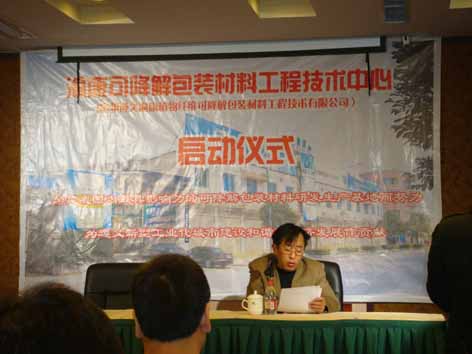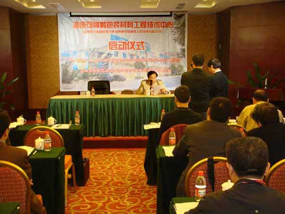 在贵州省、遵义市各级政府部门的推动下,由我校与遵义市大康绿色产品有限公司联合组建的“贵州遵义渝康可降解包装材料工程技术中心”,于2008年10月26日上午,在遵义大世界酒店举行了隆重的启动仪式。