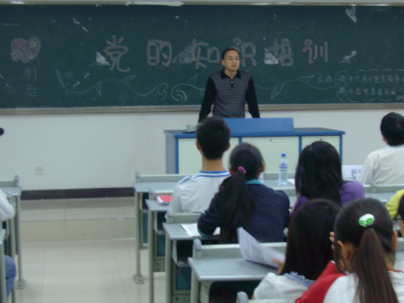 本次培训会积极响应“抓党建、促三风、建三高”学风建设的号召,对各位成员进行了深刻的思想动员大会,让同学们认识到自己已经是党员服务站的一份子,了解自己的职能和应该具有的态度。机械与包装工程学院团总支书记尹建平老师和南15栋党员服务站指导员程惠峰老师在会上讲了很多党的知识,使大家的思想有了进一步的提高.接着,站长讲话,强调大家要以“全新全意为同学服务”为宗旨,积极开展各类活动。在座的各位新成员也表现出了极强的工作热情,并一致承诺在今后的学习生活工作中做好先锋模范作用,为党员服务站展开新的一页。