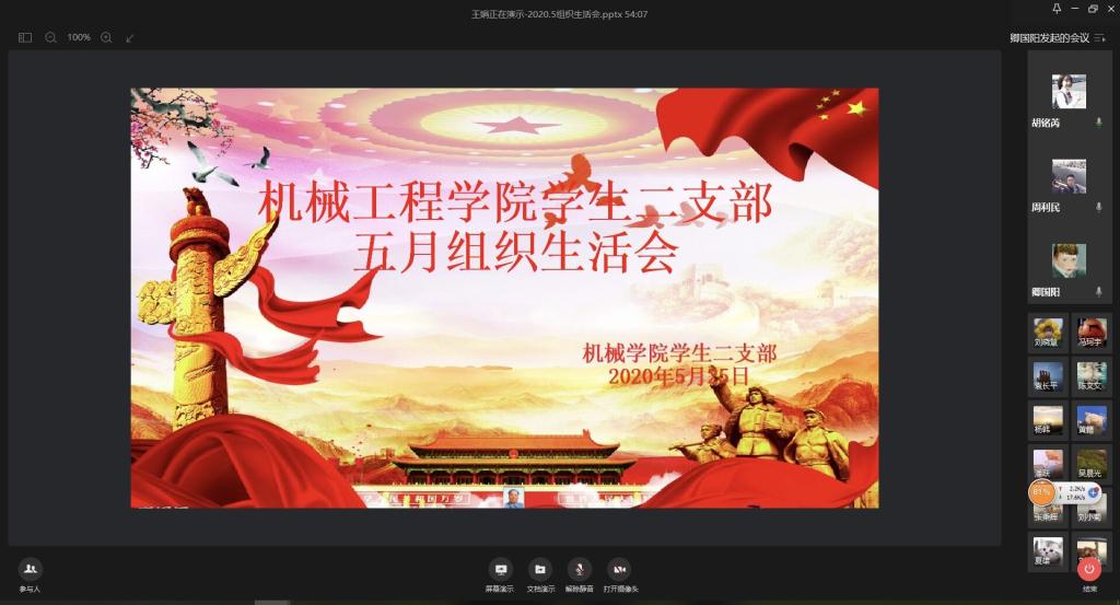 为深入学习贯彻习近平总书记陕西考察重要讲话精神、习近平总书记浙江考察等系列重要讲话精神,必赢线路检测3003no1学生二支部于5月25日(周一)中午12:10,通过企业微信线上平台开展了学习“习近平总书记讲话精神”的5月党组织生活会。会议由支部书记周利民主持,支部全体党员参与此次学习活动,支部党员积极发言,使得会议顺利开展。