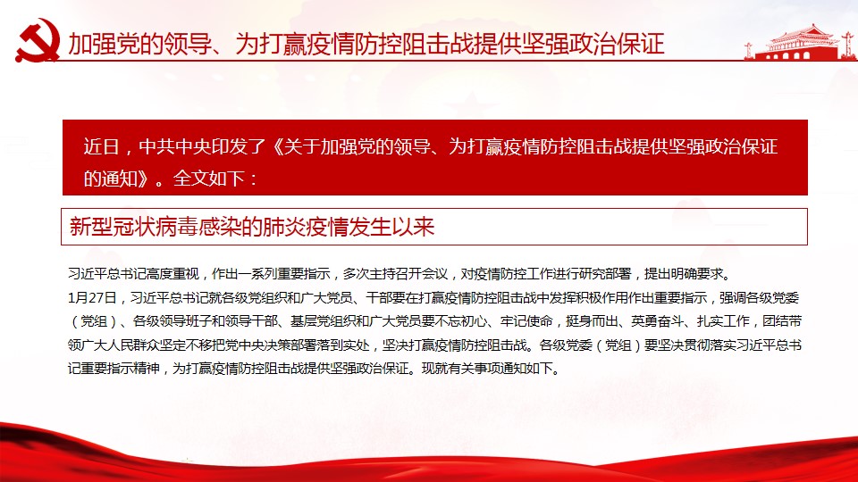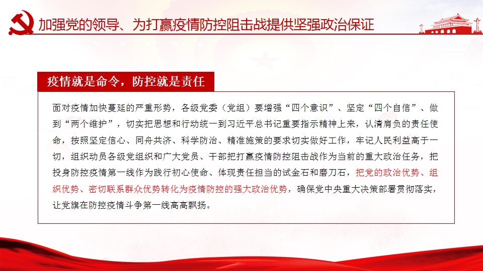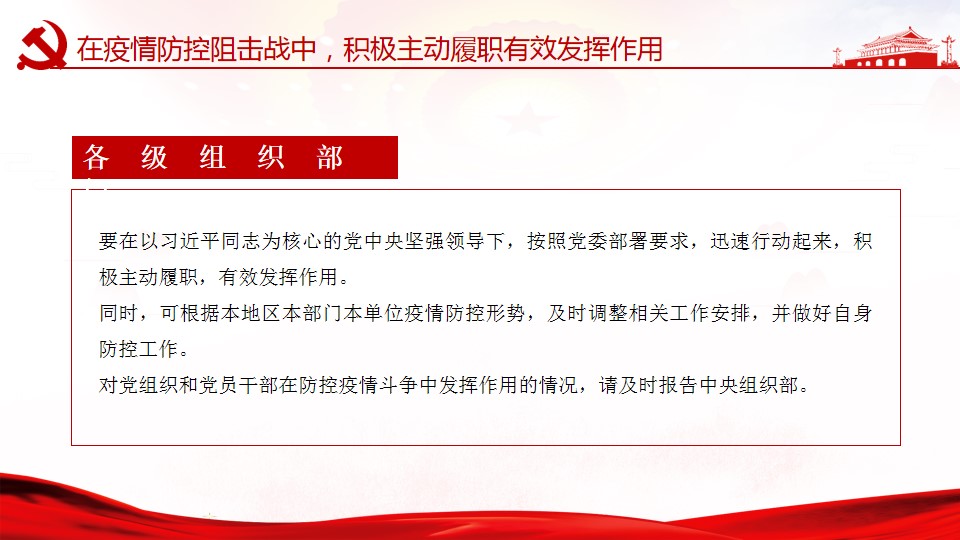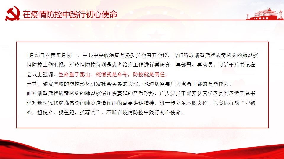 微党课要紧密围绕习近平总书记关于疫情防控重要讲话和指示批示精神,向支部成员传达了在当前防控新型冠状病毒感染肺炎的严峻斗争中,各级党组织和广大党员干部必须牢记人民利益高于一切,不忘初心、牢记使命,团结带领广大人民群众坚决贯彻落实党中央决策部署,全面贯彻坚定信心、同舟共济、科学防治、精准施策的要求,让党旗在防控疫情斗争第一线高高飘扬。