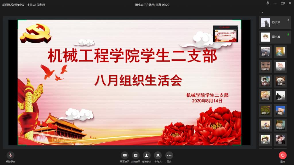 夏日炎炎,线上组织生活会犹如一杯凉茶,给同志们带来消暑的效果,在浮躁中静下来学习。8月14日上午10:30,必赢线路检测3003no1学生二支部通过企业微信会议模式开展了八月组织生活会,会议由支部书记周利民主持,支部全体党员参加。