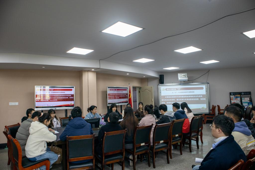 学生第一党支部书记邢月军领学了《中国共产党第十九届中央委员会第六次全体会议公报》和《中共中央关于党的百年奋斗重大成就和历史经验的决议》。党的十九届六中全会是在党成立一百周年的重要历史时刻,在党领导人民实现第一个百年奋斗目标、向着实现第二个百年奋斗目标迈进的重大历史关头召开的重要的会议。全会全面总结党的百年奋斗重大成就和历史经验,充分体现了我们党不忘初心、牢记使命的坚强意志和坚定决心,体现了我们党深刻把握历史发展规律、始终掌握党和国家事业发展的历史主动和使命担当。