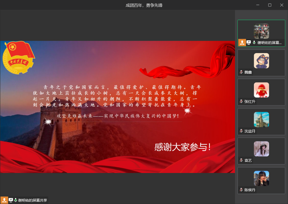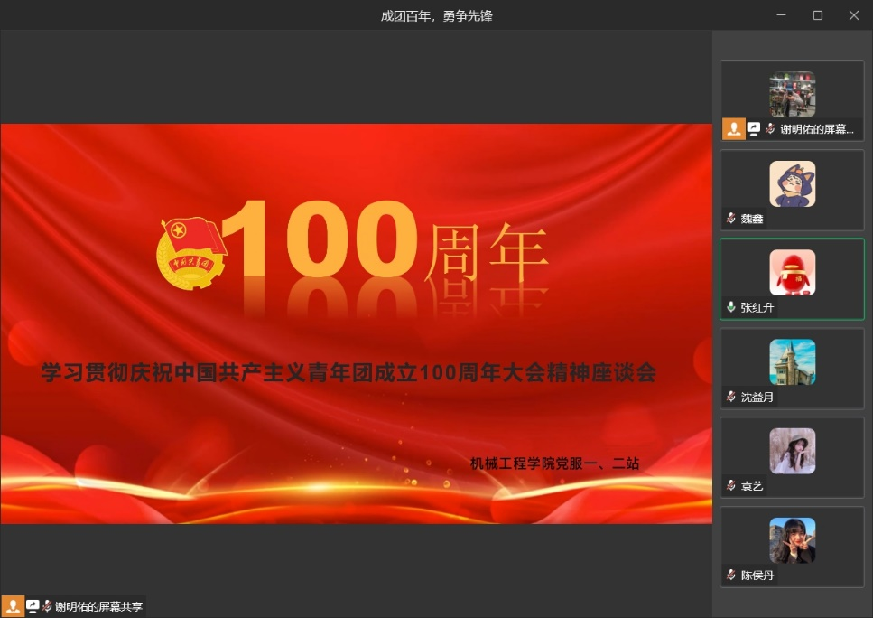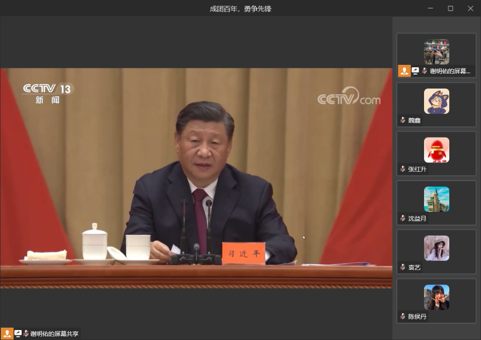 5月20日晚上7点,必赢线路检测3003no1学生党服工作站携手学生党支部,采用线上观影交流学习的方式,学习习近平总书记在庆祝中国共产主义青年团成立100周年大会上的重要讲话精神。学院陈春洁副书记带领与会入党积极分子和师生党员话心得、谈感想,切实让习总书记重要讲话精神入脑、入心。本次活动必赢线路检测3003no1党服工作站130余名同学参加了会议。
