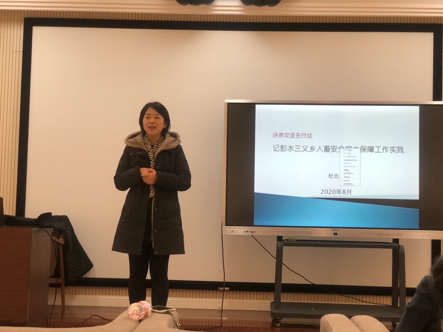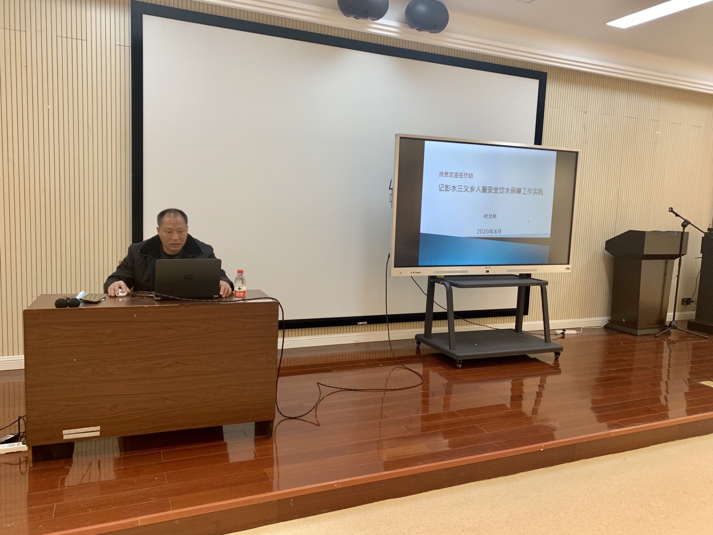 活动第二项议程,邀请后勤处副处长杜元林作彭水三义乡扶贫工作分享。杜元林副处长讲述了他本人到彭水三义乡开展扶贫工作以来,为保障三义乡人畜安全用水所做的各项努力,以及在扶贫工作中自己的收获和感触,言辞恳切,真情流露,得到了观众的一致掌声。他谈到,在彭水县三义乡的扶贫工作,得到了学校的大力支持和关心关爱,工作成绩的取得是因为有学校的坚强的后盾及全校教职工的支持。他表示,作为必赢3003no1线路检测中心的一名党员干部,为学校的发展而努力工作是他的坚定信念,扶贫攻坚的使命与担当,是他勇敢向前的精神力量。