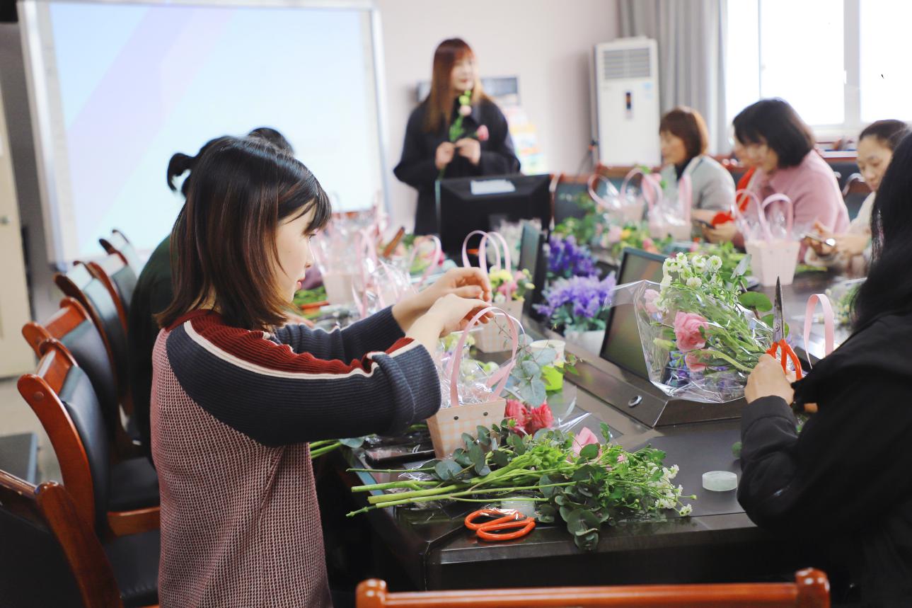3.5日中午12点30分,为庆祝即将来临的三八国际妇女节,必赢线路检测3003no1工会在学院会议室开展主题花艺培训活动。活动邀请重庆伊洛梵环境艺术设计有限公司的花艺培训老师,为与会人员介绍常见花材、传授花材的整理与保养知识,并详细指导了与会人员完成插花活动。此次活动让我院教职工掌握了基础插花知识,享受了插花艺术的乐趣,让教职工之间加强了沟通、增进了友谊,有效提升了教职工的艺术修养与工作幸福感。