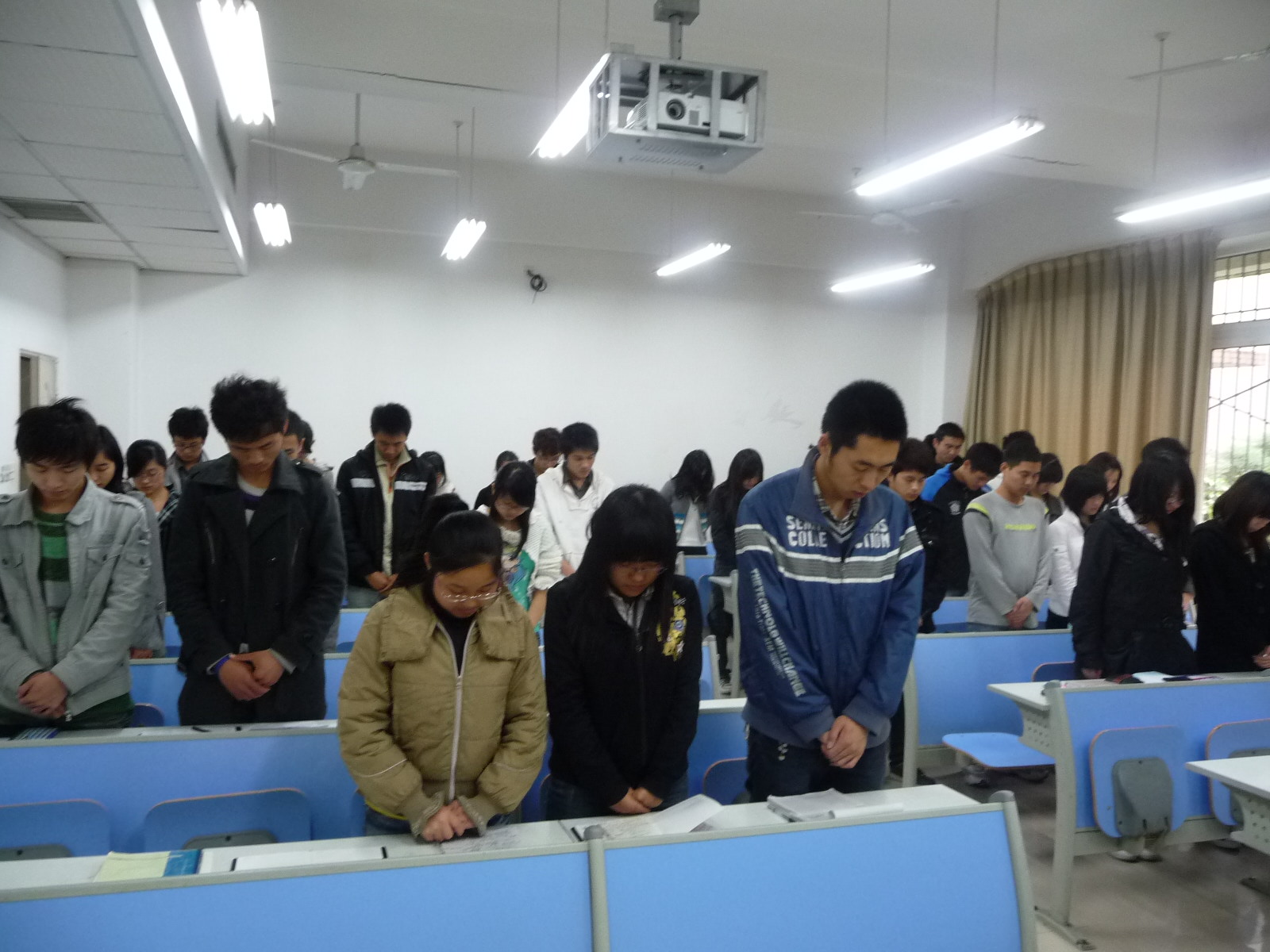 中午12:30,在必赢线路检测3003no1会议室,学院党总支学生二支部例行开展着党组织生活。但今天,与以往不同的是,会议开始前,主持人黄杰渝老师率全体出席者在会前为玉树遇难的同胞们默哀三分钟。