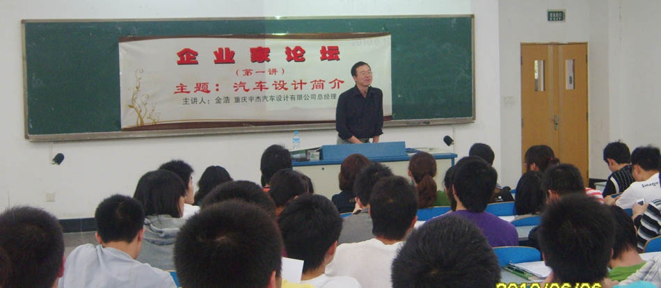 6月10日下午,必赢线路检测3003no1企业家论坛首场讲座在慧智楼90326教室举行。重庆宇杰汽车设计有限公司总经理金浩应邀做了以“汽车设计简介”为主题的讲座。学院07级机电、机制、模具、汽车专业学生及院党政领导参加了本次讲座。