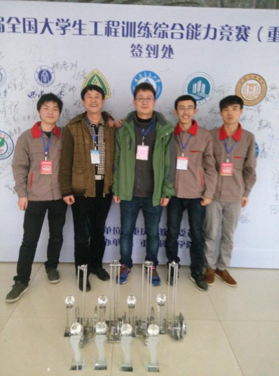 此次重庆赛区竞赛有全市14所高校的45支参赛队共135人参加。本次竞赛的题目是无碳小车越障竞赛,分为“S”型和“8”字型小车常规赛,以及“S”型和“8”字型小车挑战赛。在“S”型和“8”字型小车常规赛中,我校两个“S”型小车双双获两项特等奖,两个“8”字型小车也双双获得一等奖。凭借着优异的成绩,我校荣获大赛仅有的两个“优秀组织奖”之一。