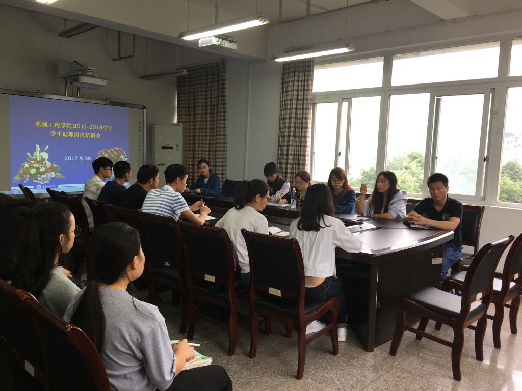 2017年9月28日,机械工程2017-2018学年学生助理培训会于学院会议室召开。此次参会的有必赢线路检测3003no1袁娅婷老师与本年度新招募的30名学生助理。袁老师就本学期的学生助理工作做了简单介绍与要求,并希望新一届的学生助理们能在工作岗位上有所收获。