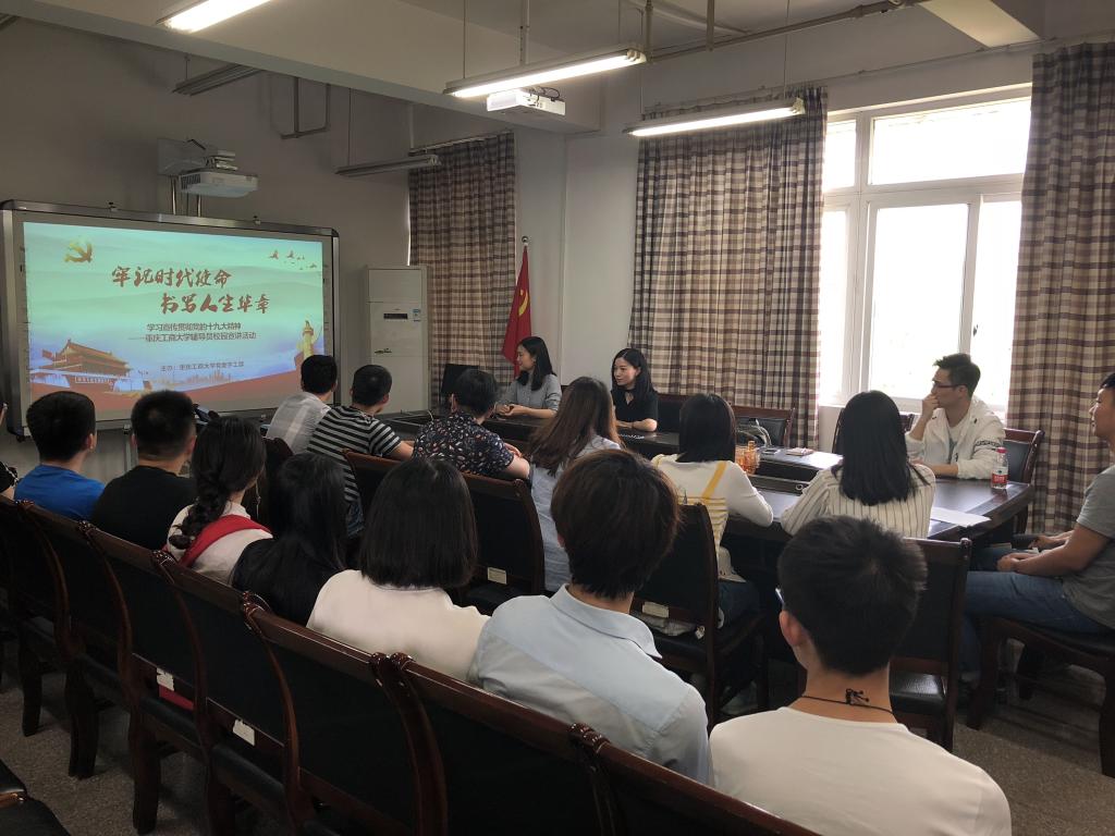 4月19日中午,根据学校的统一部署,必赢线路检测3003no1优秀辅导员学习贯彻党的十九大精神宣讲会在慧智楼90711举行。辅导员向巧、袁娅婷分别作了宣讲报告,围绕如何准确深入地学习领会党的十九大精神作了全面系统的阐述。学院学生二支部全体党员聆听了两场精彩的报告。