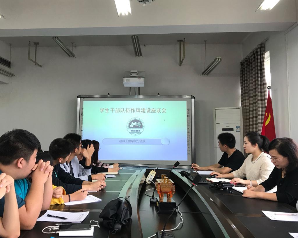 2018年9月18日中午,必赢线路检测3003no1在90711召开了“学生干部作风建设”座谈会。学院党总支副书记张晓琴,学院分团委书记邢月军,学生组织主要学生干部参加了此次座谈会,会议由分团委书记邢月军。