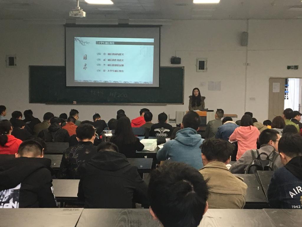 11月13日下午,秦杉老师在90310对15级汽服、包装专业,16级汽服、机电专业开展了“大学生诚信教育”主题班会。她主要从诚信的词句释义、诚信的作用道义、诚信的现状反映、大学生诚信教育注意事项四个方面给学生做了引导教育。并且列举了大学生诚信考试、撒谎请假、无故旷课、大学生违规校园网贷,征信问题的诚信、毕业生求职过程中简历的真实、遵守签约协议的诚信问题等典型案例,给同学们生动地讲解了诚信的重要性和必要性,倡导学生要树立诚信意识,诚信做人做事。会后,同学们与辅导员做了互动交流,大家对自己身边的诚信案例、对诚信的看法发表了意见,大家表示收获很大。袁娅婷老师在90221对15级机制1班开展主题班会,使广大同学了解诚信的内涵。通过视频播放违反校规校纪、校园贷逾期的案例,让同学们更加深刻的体会到诚信不仅体现在遵守法律法规、校纪校规和社会公德,更是一个人的立身之本、做人之道。