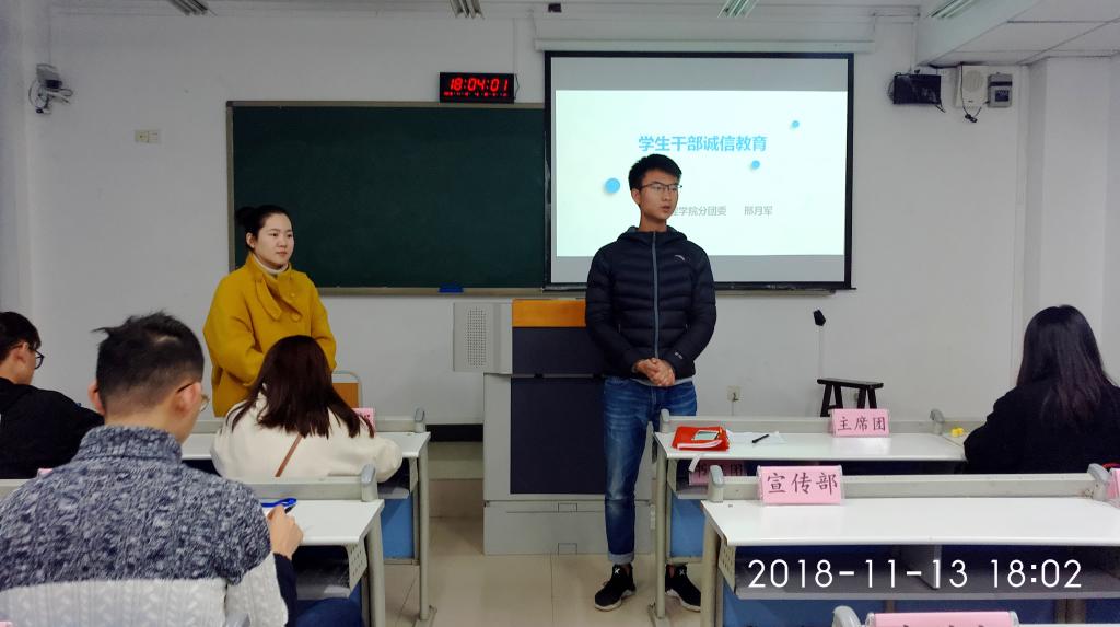 11月13日下午邢月军老师在90201对学生干部开展“诚信教育”主题教育活动,旨在进一步加强学生干部的诚信教育,增强学生诚信意识,树立正确的世界观、人生观、价值观。邢老师从什么是诚信、为什么要诚信、怎样去践行诚信三个方面为同学们讲述了诚信,引导学生树立积极的诚信评价标准,养成诚实守信、讲求信用的良好习惯,做到对他人、对学校、对社会讲诚信,守信用,重承诺,使自己成为一个具有良好道德风尚的人,她还特别强调了践行诚信要从自身做起,从身边小事做起。接着学生会主席付子城对这半学期各部门及学生会整体的表现提出了建议,也谈到了学生干部中出现的失信行为。学生干部们就今天的活动展开讨论,最后大家一致认为要做一个诚信的人。通过本次活动,同学们反思了过去的自我表现,明白了诚信的意义及重要性,也对今后的工作和学习有了更深刻的认识,希望接下来的时间里,学生干部们怀揣着诚信与责任砥砺前行。