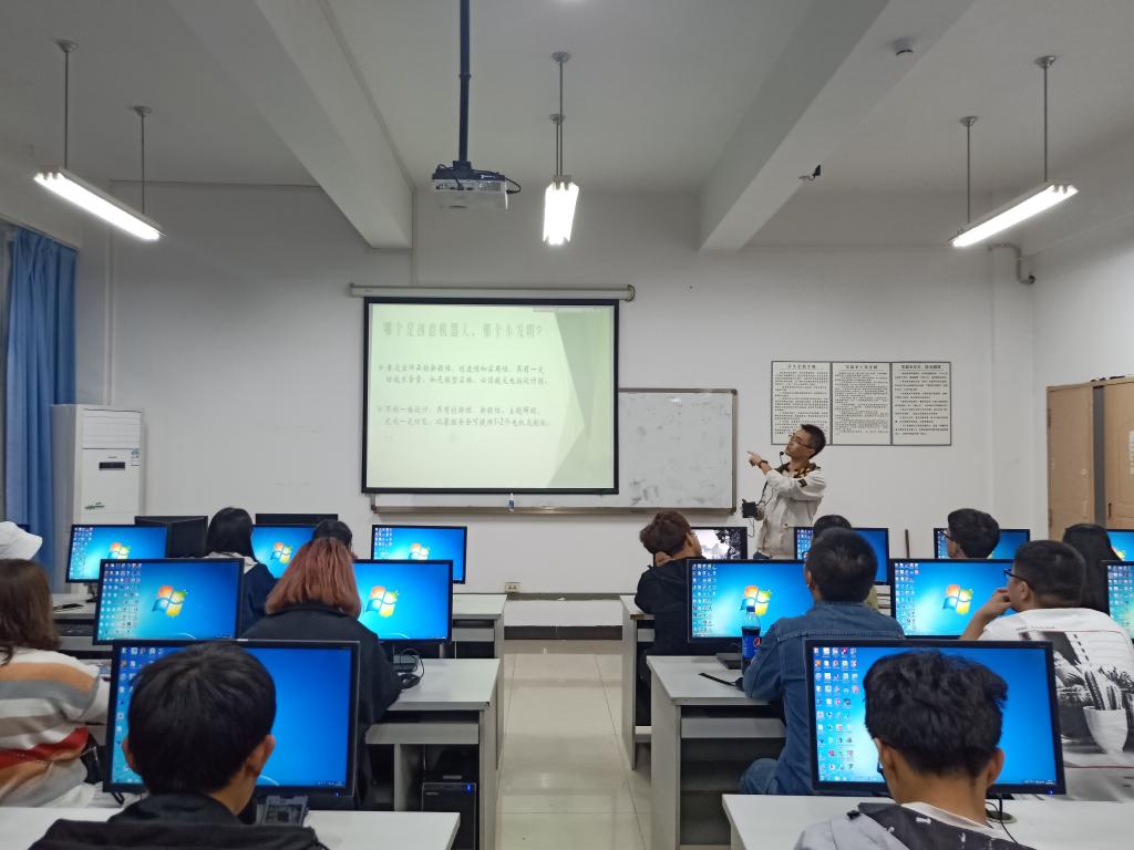 2019年10月17日晚,必赢线路检测3003no1在10209教室开展了机器人比赛宣讲会,主讲为机电系主任王洪建老师,上届获奖学生代表胡崇尔、蒋仕刚和郑仝也在会上进行了经验分享。
