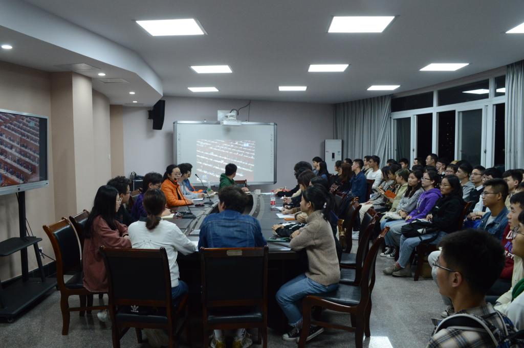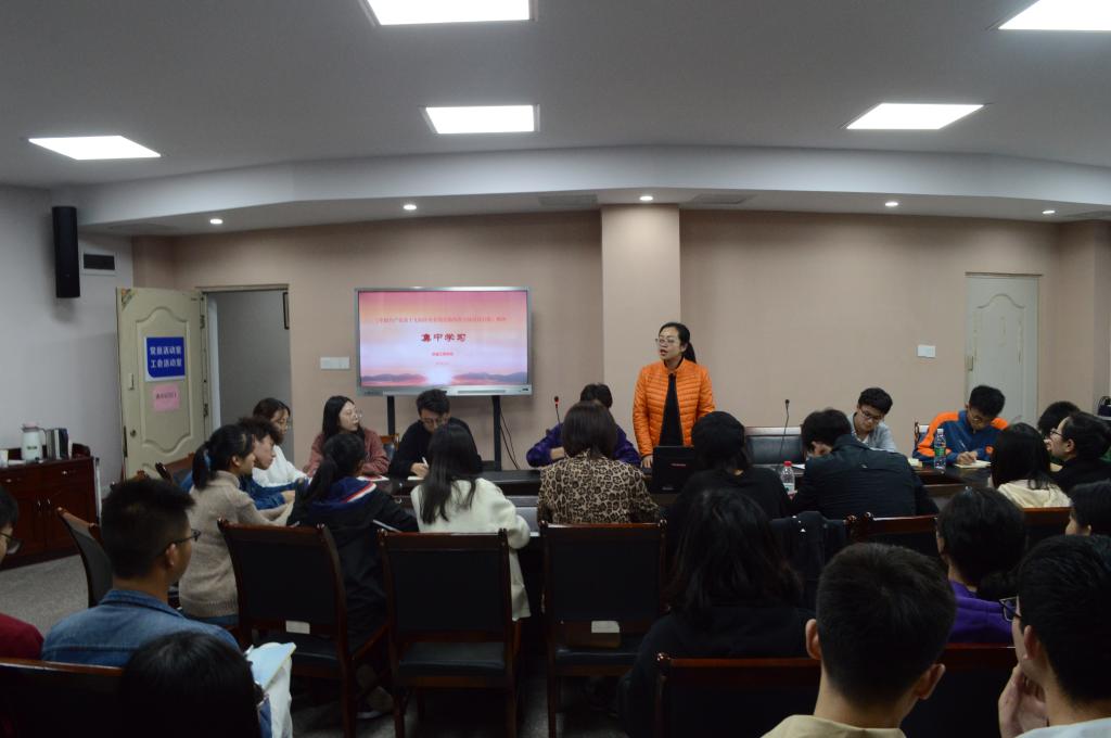 2019年11月1日19:00,必赢线路检测3003no1学生在慧智楼90709集中学习《中国共产党第十九届中央委员会第四次全体会议公报》。学院学工办主任刘静老师主持了此次集中学习,我院分团委学生会、科技协会、初阳义工协会全体学生干部和学院学生第一党支部、学生第二党支部全体入党积极分子和预备党员参加了本次集中学习。