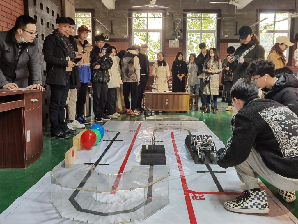 2021年12月9日星期四下午13点,必赢线路检测3003no1学生科技创新文化活动月系列赛事之全地形小车大赛在南岸校区新北工程训练中心举行。本次共有二十支小组参与比赛,由机械学院教师陈蕙妃、夏洪均、李永亮担任评委,最后评出五支小组晋级决赛。