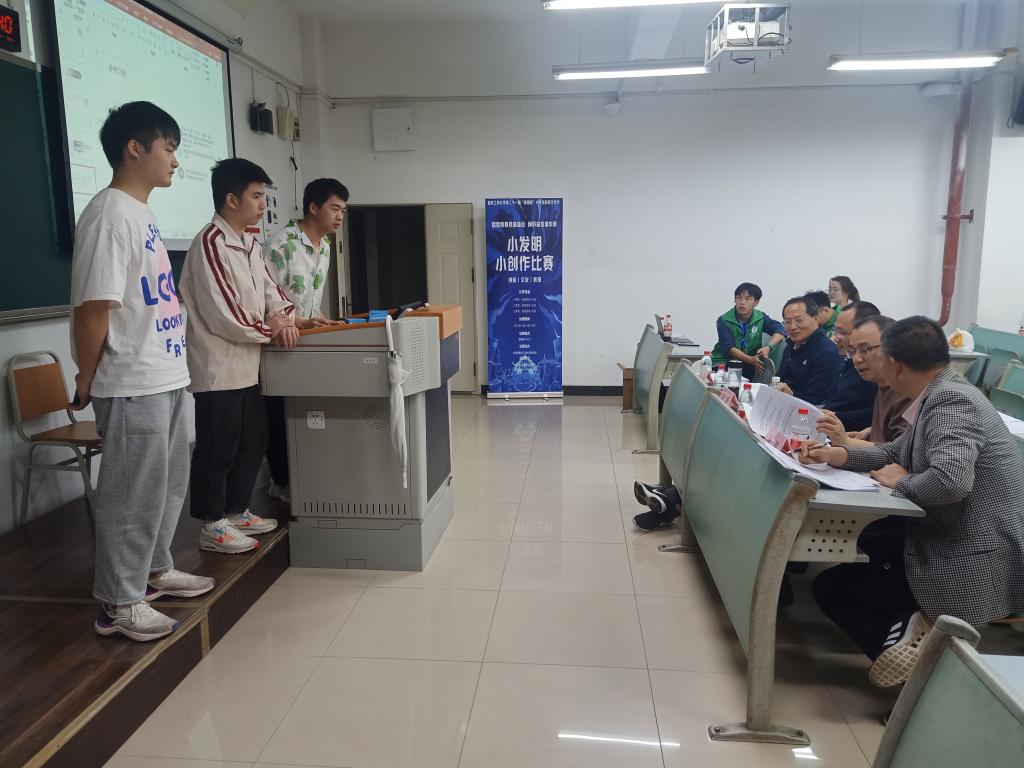 比赛伊始,杨洪老师作为本次比赛的指导老师,为参赛的各位选手们阐明了本次比赛的意义:举办这次“小发明小创作”大赛的目的,是培养学生“发现需求和创业机遇”,利用所学理工科专业知识,提出可行的技术解决方案、践行“知行合一”的实战训练,锤炼学生的“创新创业技能”,这不仅需要同学们多思、多想、多实践,还需要大家对市场、专利、需求等方面足够的了解与调查。同时,为了保证比赛的公平性,每位评委老师都会对参赛的小组进行提问并打分,最后结果取平均分。
