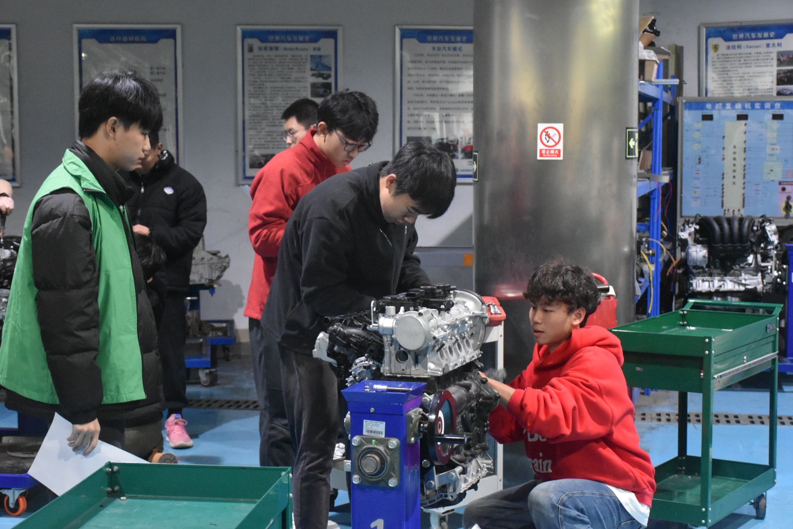 必赢线路检测3003no1汽车工程系专任教师王旭东老师受邀作为发动机拆装大赛指导老师,专业社团“汽车人”团队对参赛选手进行培训。