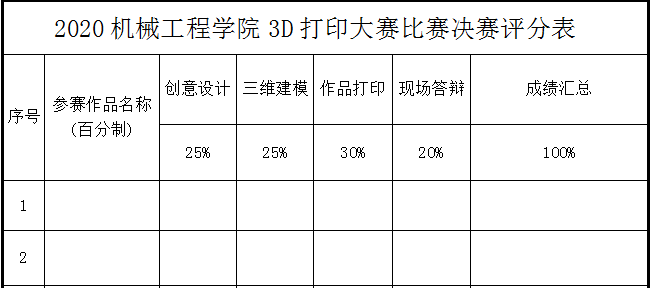 初赛评审等级仅仅是进入决赛的依据,初赛成绩不纳入决赛的评审中,所以此次大赛的最终成绩取决于3D打印作品实物效果及答辩汇报情况等因素,同学们一定认真对待。决赛评分细则如下:
