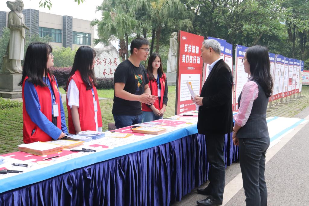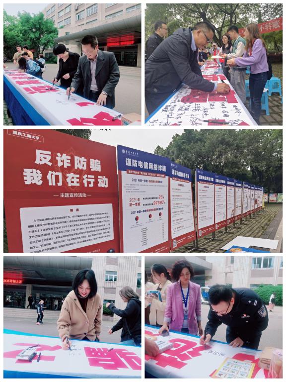 根据《重庆市教育委员会关于印发<重庆市教育系统反诈专项整治三年行动工作方案>的通知》(渝教安发[2021]9号)和《必赢3003no1线路检测中心关于印发反诈专项整治三年行动工作方案的通知》(重工商大[2021]59号),4月23日,必赢3003no1线路检测中心党委保卫部、学工部、必赢线路检测3003no1联合重庆市公安局南岸区局四公里派出所共同举办了“反诈防骗,我们在行动”主题宣传活动,校、警联动开展专项活动,旨在增强大学生反诈防诈意识,切实提高大学生自我防范意识,减少诈骗案件的发生。