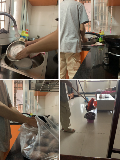 “参与劳动,崇尚劳动,以劳尽孝”要求参与者完成一份家庭劳动任务清单,掌握更多的家庭劳动技能,分担家务负担。活动中同学们积极响应学院号召,在家积极完成家庭劳动任务清单。他们在被父母悉心照顾的同时,也慢慢懂得了分担家务、学会了做家常菜。有的同学不禁感慨:“父母对自己手艺的赞美,看到他们吃饱后的满足,都是让人十分幸福的,每天用心做好饭菜等待忙碌的妈妈回家大概就是这个假期做的最有意义的事”;还有的同学在家开展“卫生大扫除”,把家收拾得更加整洁温馨,他说:“整个过程是漫长的,但是又带着让人兴奋的感觉,索性最终的这个结果,是令人满意的。”;除此之外,还有更直接也更贴合生活的劳动方式——帮助家里干农活,他们在烈日下汗流浃背,体会劳动带来的充实感。自疫情发生以来,同学们都在刷新着居家时间的记录,在这个不同寻常的假期中,很多人开始主动担当家务,制作美食,体会劳动创造的美好生活,树立正确的劳动观。