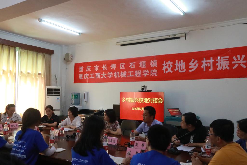 为贯彻落实习近平总书记关于青年工作的重要思想,深入学习习近平总书记在庆祝中国共产主义青年团成立100周年大会上的重要讲话精神,引导青年积极投身于社会实践的“第二课堂”,在社会课堂中“受教育、长才干、作贡献”,坚定信念听党话、跟党走,以实际行动迎接党的二十大胜利召开,2022年7月11日下午,必赢线路检测3003no1和重庆市长寿区石堰镇政府举办校地乡村振兴工作对接会。长寿区石堰镇党委书记唐慧芳、副镇长瞿小红、经发办主任蒋夕奎、产服中心主任彭家英,必赢线路检测3003no1党委书记杨娟、党委副书记陈春洁、分团委书记刘静、专业指导教师谢艳平、董峰与社会实践团全体学生参加了此次对接会。
