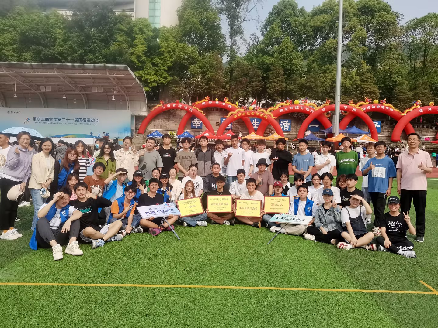 经过两天的激烈角逐,必赢线路检测3003no1的师生们展现出了超强的运动实力和永不言弃的精神。在机械学子的共同努力下,除获得戏曲广播体操一等奖外,还荣获了学生男子甲组团体赛第三名、学生女子甲组4*400米接力第三名。机械学院的优秀运动员也收获了丰硕的成果:尔古友惹获得学生男子甲组400米比赛第三名、陶枭获得学生男子甲组800米比赛第二名、孙正宏获得学生男子甲组1500米比赛第三名、杨璞国获得学生男子甲组跳远比赛第三名。张威老师获得教工男子甲组铅球比赛第二名、余洋老师获得教工女子甲组45秒跳绳比赛第二名、杨娟书记和黄美娜老师分别在教工女子丙组比赛中获得第二名和第三名。