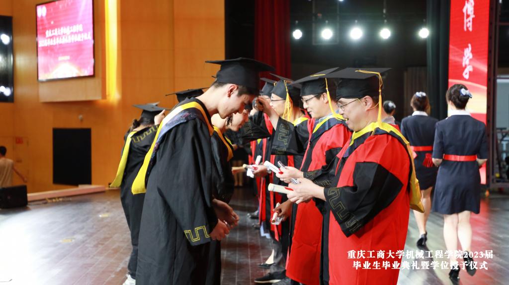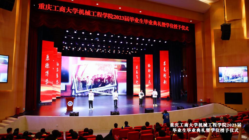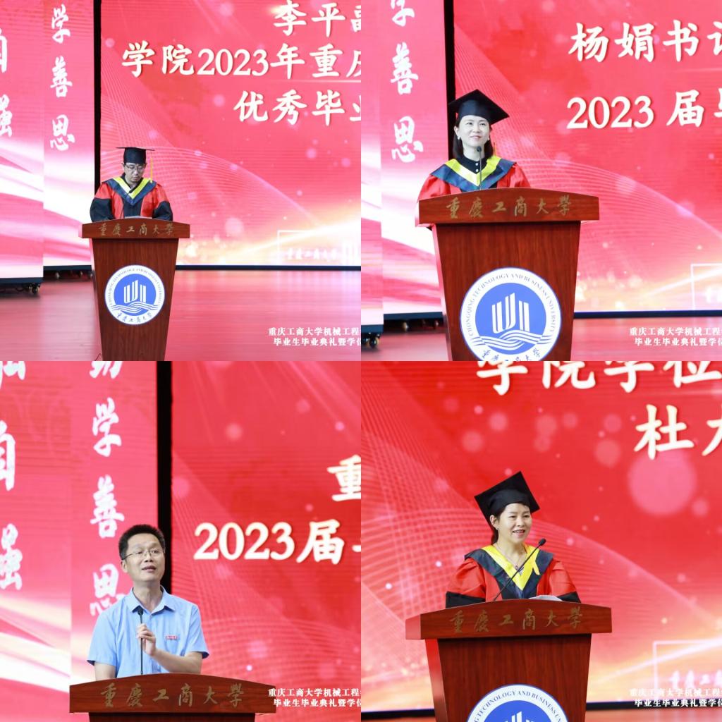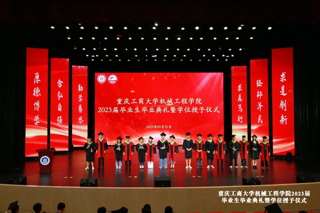 仪式在庄严的国歌声中开始,学院李平副院长宣读了2023年重庆市优秀毕业生表彰决定、必赢3003no1线路检测中心优秀毕业生表彰决定文件和获奖名单。辅导员老师刘静、邢月军、饶俊妮、刘玺、梁正伟为余江南、谢德清、严喆、黄晓琴、程渝淑、陈泓西、张慧琳、黄颖、张俊杰、旷运川等11名优秀毕业生代表颁发了获奖证书,他们或在学习实践中成绩突出,或在学科竞赛中成果丰硕,或在志愿服务中表现优异,彰显了我们机械学子德才兼备、积极向上的精神风貌。
