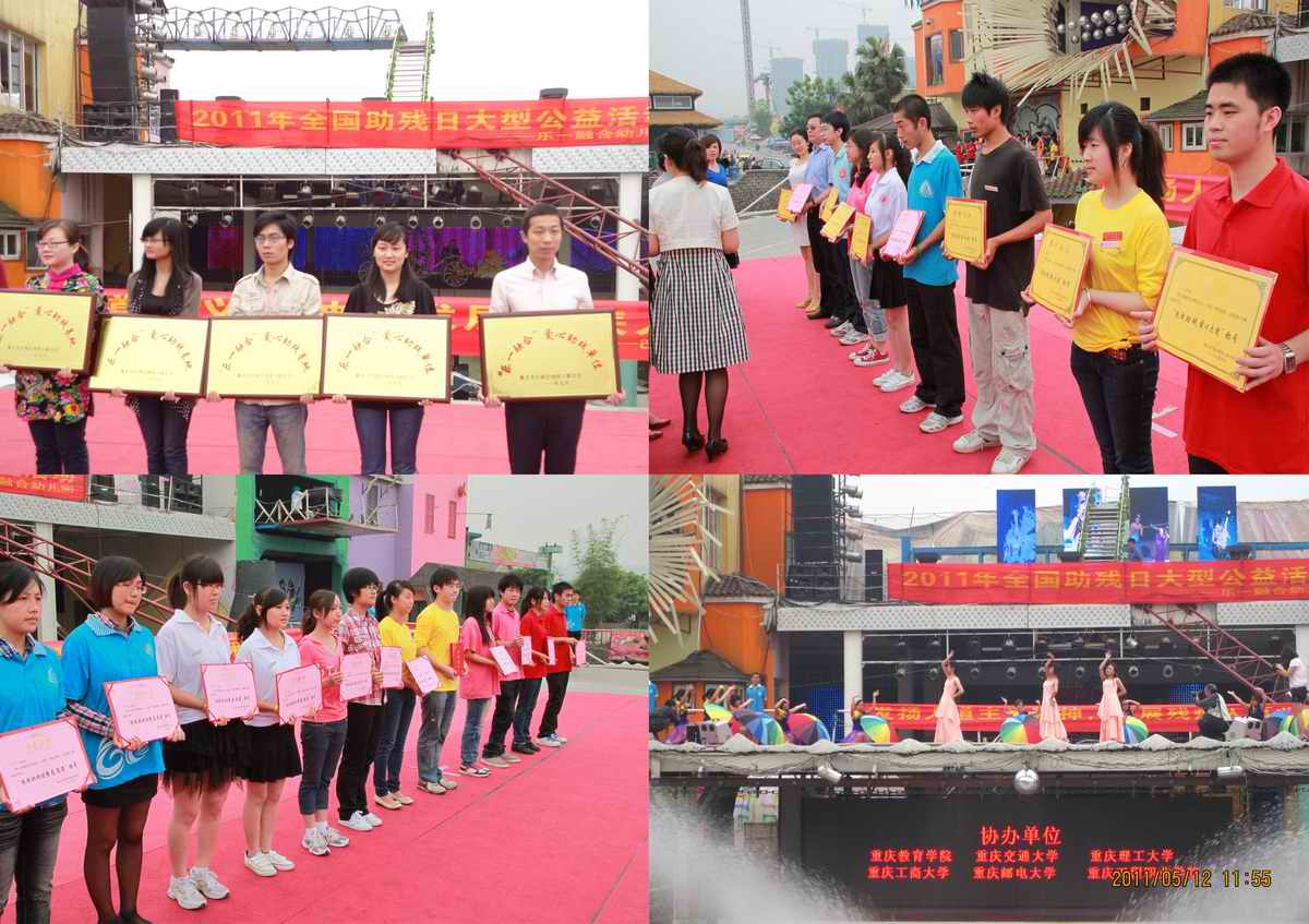 为迎接第21个“全国助残日”,5月13日,由美心集团赞助,重庆市巴南区残联主办,必赢3003no1线路检测中心、重庆教育学院、重庆理工大学、重庆邮电大学、重庆交通大学等协办,为“乐一融合”幼儿园举行的“爱心助残、情洒残障”的大型公益活动在洋人街隆重举行。必赢线路检测3003no1团委书记王微老师,学生会主席曹瑞、邱鹏、郑佳带领50余名志愿者参加了此次活动。