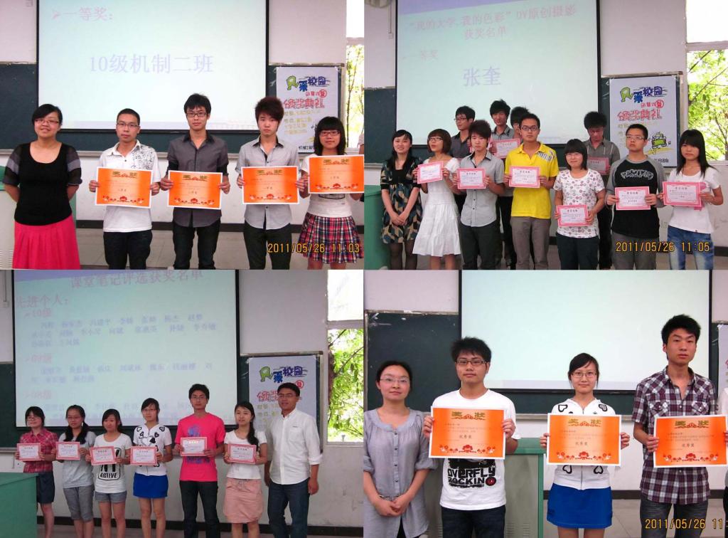 五月明媚的阳光照耀在美丽的校园,我们迎来的是收获和喜悦。在过去的三个月里,在必赢线路检测3003no1分团委全体成员的努力下,我们成功举办了“第一届春季运动会”、“我的大学我的色彩”DV摄影大赛、“课堂笔记评比”、“班刊评比大赛”、“全国3D大赛校内选拔赛”、“主持人大赛”等风采系列活动。在各项活动中,同学们参与面广,积极性高,取得效果好,涌现出了大量的优秀个人和团体。此次闭幕式暨颁奖盛典既是对获奖同学的表彰,也是对本学期分团委学生会活动的一次总结和展示。在视频中,我们一起回忆了走过的点点滴滴,精彩瞬间。之后,颁奖仪式顺利举行,接着是一段激扬的朗诵《青春中国》,展现了所有青年学子对祖国,对家园的热爱。最后,刘洋副书记做了总结讲话,他对获奖的个人和集体表示祝贺,对本次活动的成功举办给予了肯定和表扬。他希望机械学子在不断学好专业知识的同时,积极锻炼,增强创新能力,展示自我风采,为学院增光,为学校添彩。