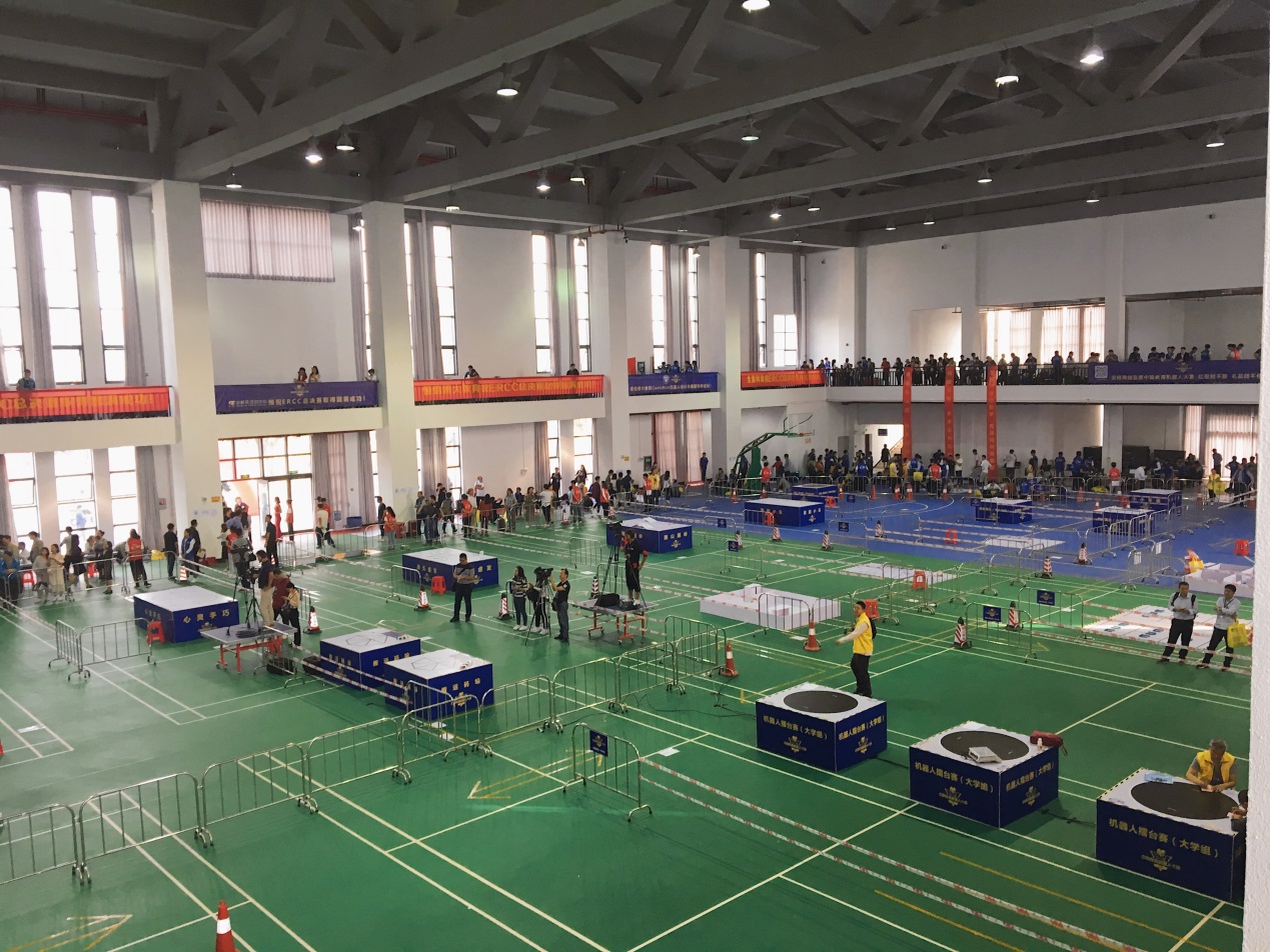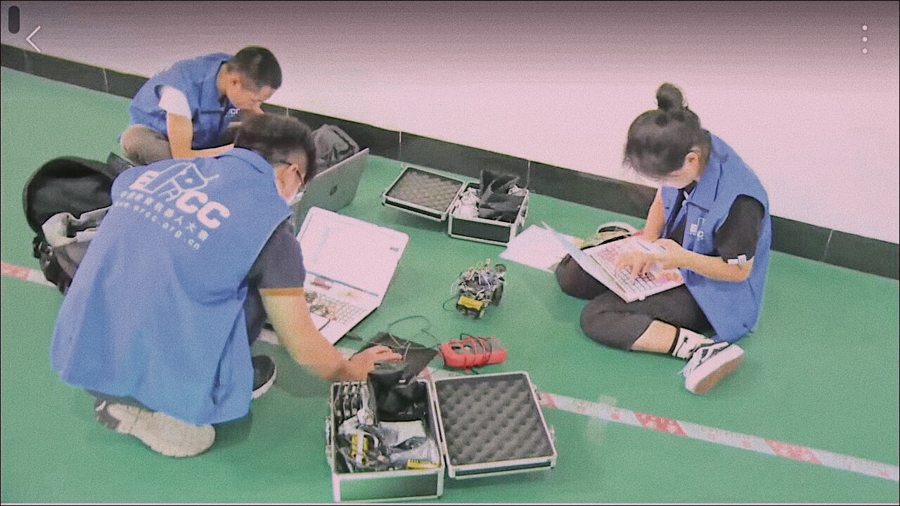 在比赛前一天,我们六点才到达比赛城市,待入住酒店后便马上赶往比赛地点进行调试,不幸的是时间太晚,场地已开始清人,我们在场地跑了几圈后便被赶了出来,同时有两台车的状态也不太理想,只有一台车能稳定发挥。到了第二天比赛,裁判由于时间原因并没有给大家规则上写的一个小时调试时间,这也就意味着游中国队在到达北海后根本没有进行过调试。在公布地点编码到上交机器短短45分钟内,我们立刻找了块空地坐下修改编码、检查线路。在漫长的等待后轮到我们上场了,第一台车顺利的跑完,到了第二台车跑到一半,裁判发现了问题:机器没有声音,但我们依旧让它跑完了全程。到最后三台车顺利跑完,但因为语音原因第二辆小车只能得到两分。整个准备比赛的过程非常的曲折,到最后回学校的动车上我们都在讨论战术,当时该不该让它跑完,不跑完时间就少,跑完了就能多两分。