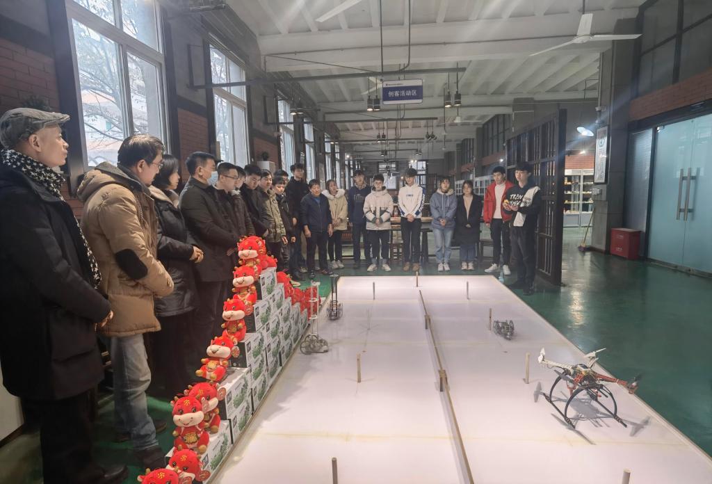 2021年1月26日,学院全体院领导来到工程训练中心二楼,慰问今年寒假因备战2021年全国大学生工程训练综合能力竞赛而留在学校的全体学生和指导教师。