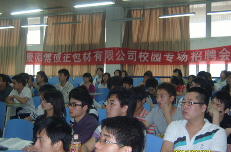 6月11日下午2:30,重庆顶正包材有限公司暑期实习生校园宣讲招聘会在慧智楼90308教室成功举行。必赢线路检测3003no1党总支罗卫书记莅临现场作指导,学院学团办主任尹建平老师、07机制和07包装专业学生及学校其他相关专业的150余名同学参加了宣讲招聘会。