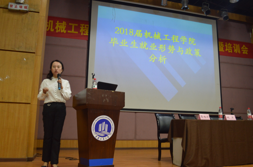 就业指导中心副周婷主任结合近几年学校和必赢线路检测3003no1的就业数据,从宏观和微观两方面为毕业生做了2018届毕业生就业形势分析,鼓励同学们树立就业信心,做好就业准备。她建议同学们要明确自己的定位和目标,积极参加各种招聘会,在实践中积累求职经验,提高自身就业竞争力。