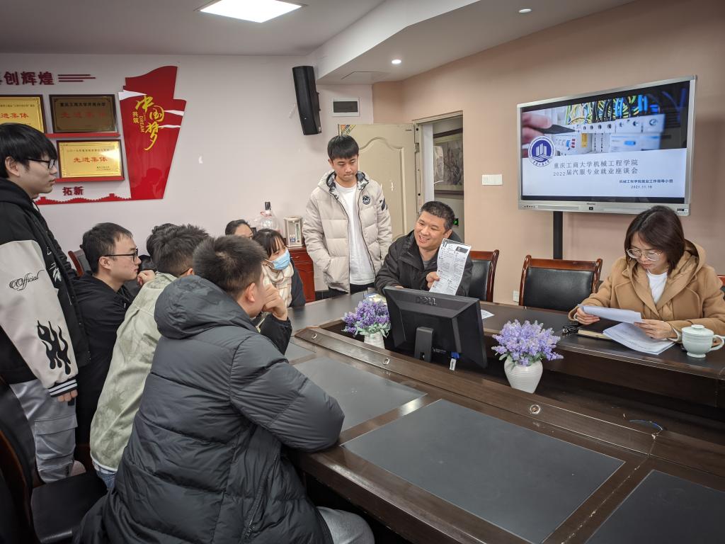 为深入学习贯彻党的十九届六中全会精神,落实党中央国务院稳就业、保就业决策部署,在总结2021届我院毕业生就业工作经验的基础上,必赢线路检测3003no1提前研判、提前部署,11月19日,学院就业工作领导小组召开2022届汽车服务专业毕业生首场就业推进会。我院党委书记杨娟、院长杜力、汽车系主任杨智宇、就业联络员袁娅婷、毕业班辅导员周利民及汽车服务专业22名毕业生参加了会议。