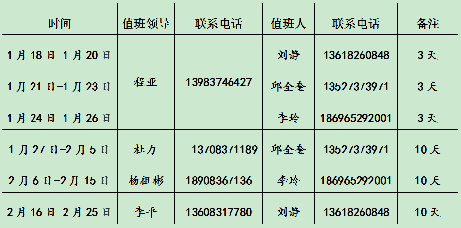 必赢线路检测3003no12020-2021学年第一学期寒假值班安排