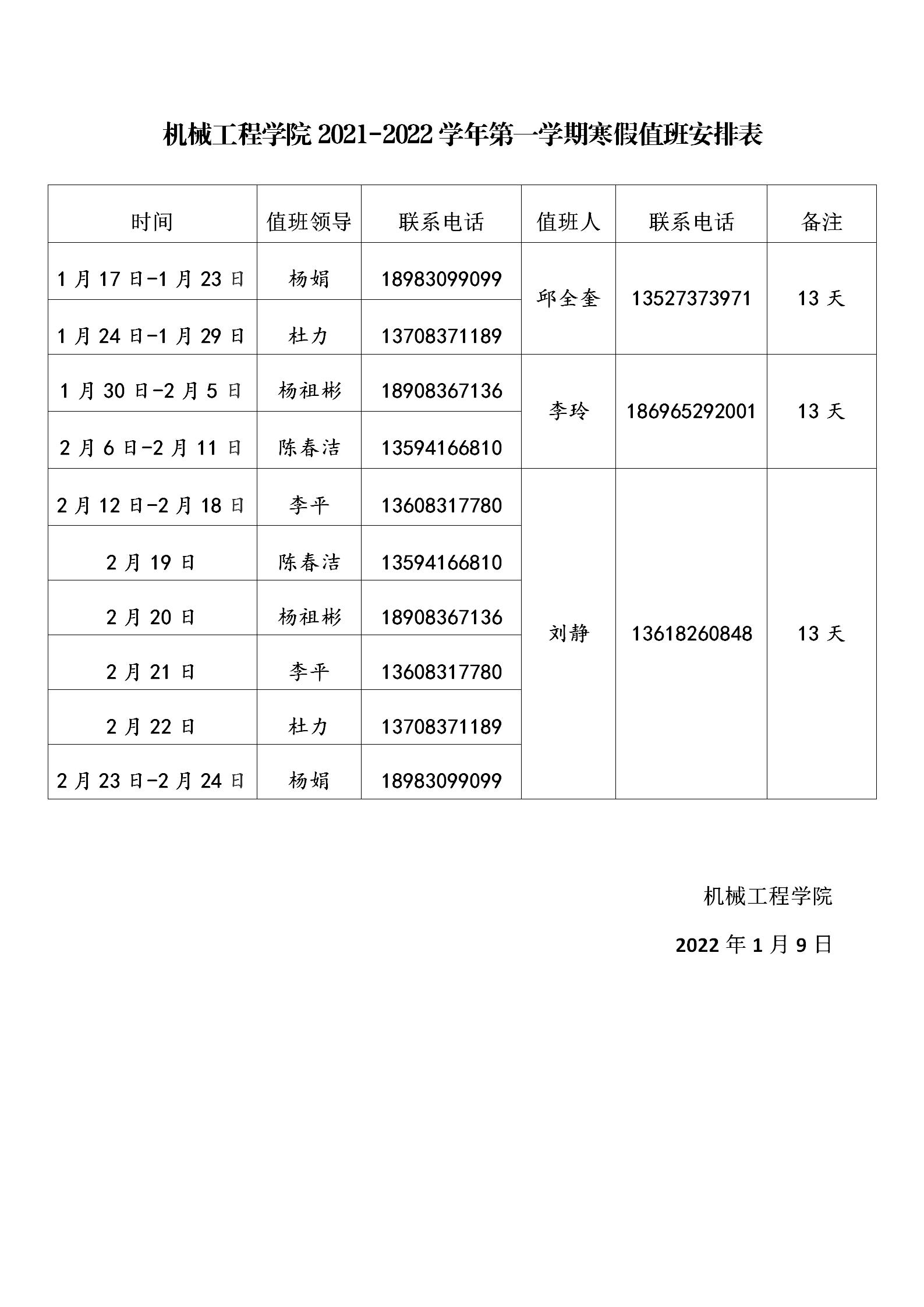必赢线路检测3003no12021-2022学年第一学期寒假值班安排表