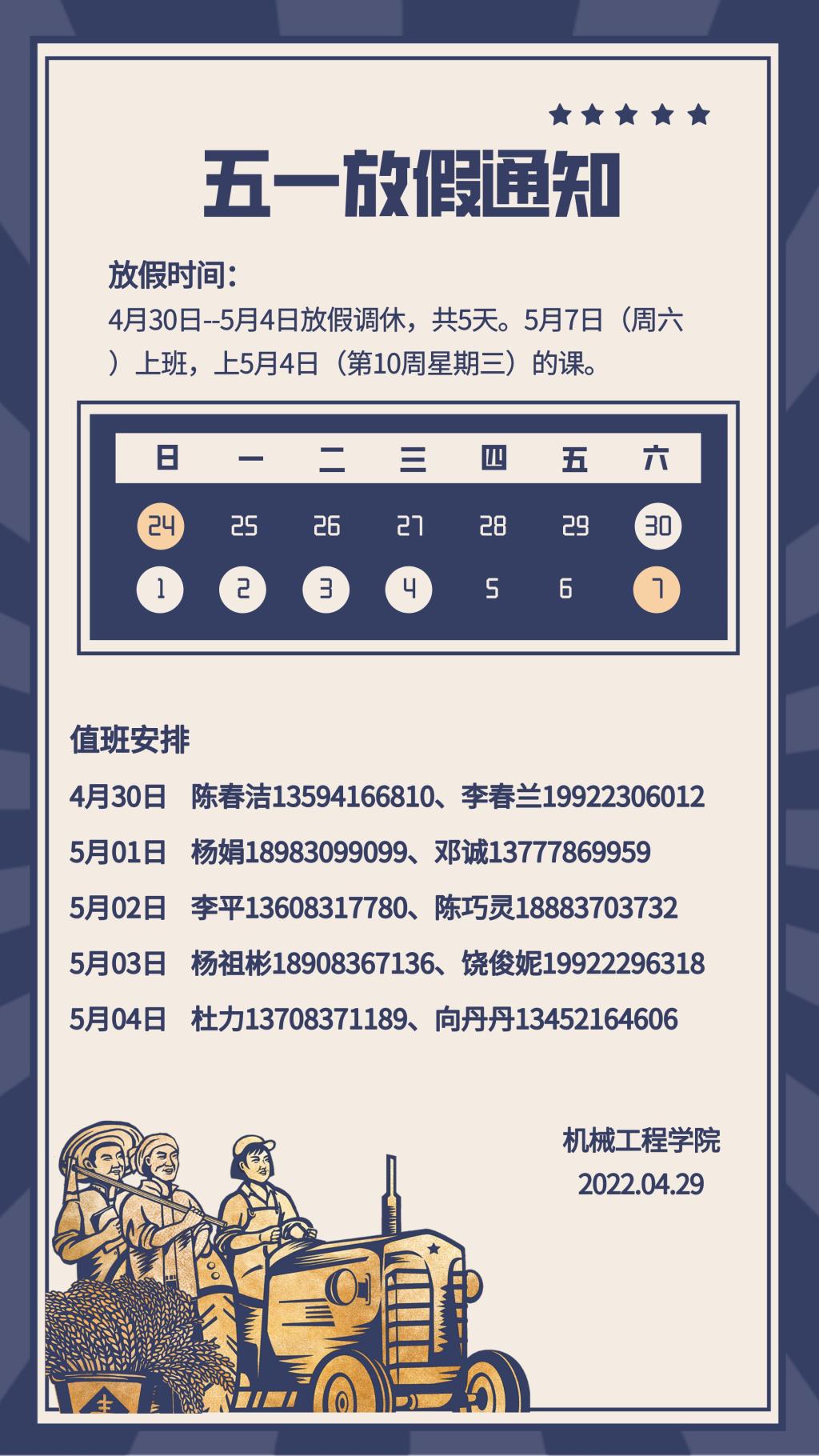 必赢线路检测3003no1五一放假通知及值班安排