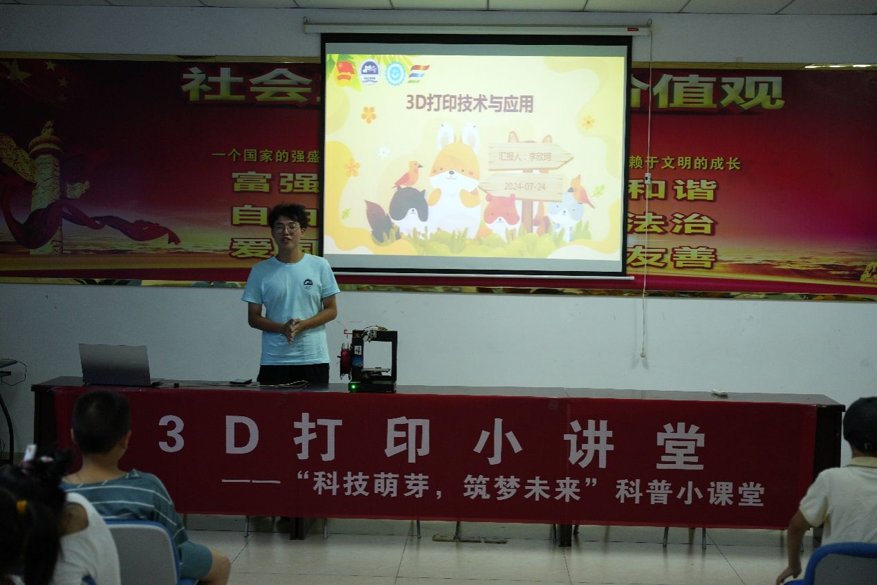 活动中,李 欣珂成为了孩子们眼中的“科技使者”。他以生动有趣的方式,深入浅出地讲解了3D打印技术的发展历程、基本原理及其在各领域的广泛应用。从最初的概念构想到如今在医疗、教育、制造业等多个领域的突破性应用,李 欣珂的讲解让小朋友们深刻感受到了科技进步的力量。