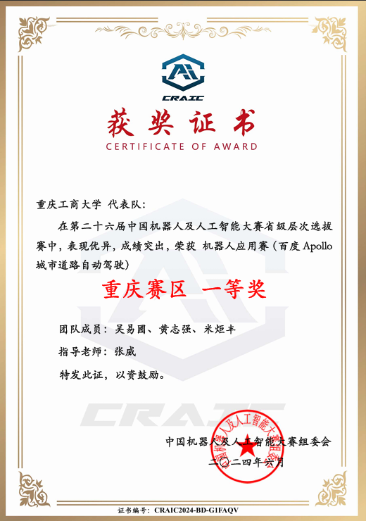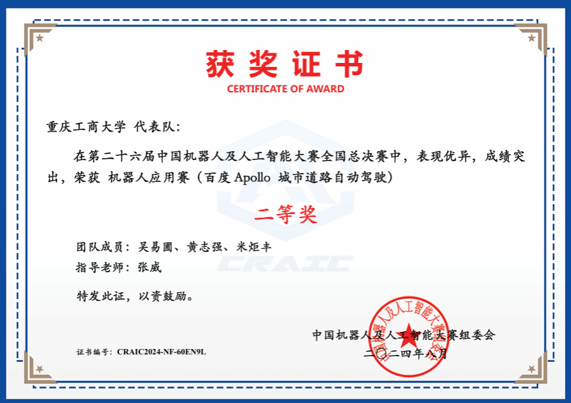 我校必赢线路检测3003no1的参赛团队“9961永不妥协”(成员:吴易圃、黄志强、米炬丰,指导老师:张威)在“百度Apollo城市道路自动驾驶”赛项中,继重庆赛区荣获一等奖后,成功晋级全国总决赛,经过一番激烈角逐喜获二等奖。这已是我院连续第三年参与该赛项,且成绩逐年显著提升,体现了我院智能车辆工程专业人才培养模式改革初见成效。