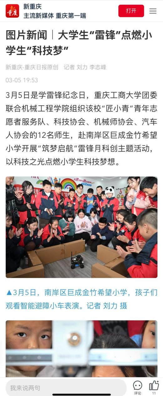 新重庆-重庆日报客户端:《大学生“雷锋”点燃小学生“科技梦”》https://wap.cqrb.cn/xcq/NewsDetail?classId=437&newsId=2198608&staticUrl=https%3A%2F%2Ft.cqrb.cn%2F0Hc4Y&RandomTime=1741183316253