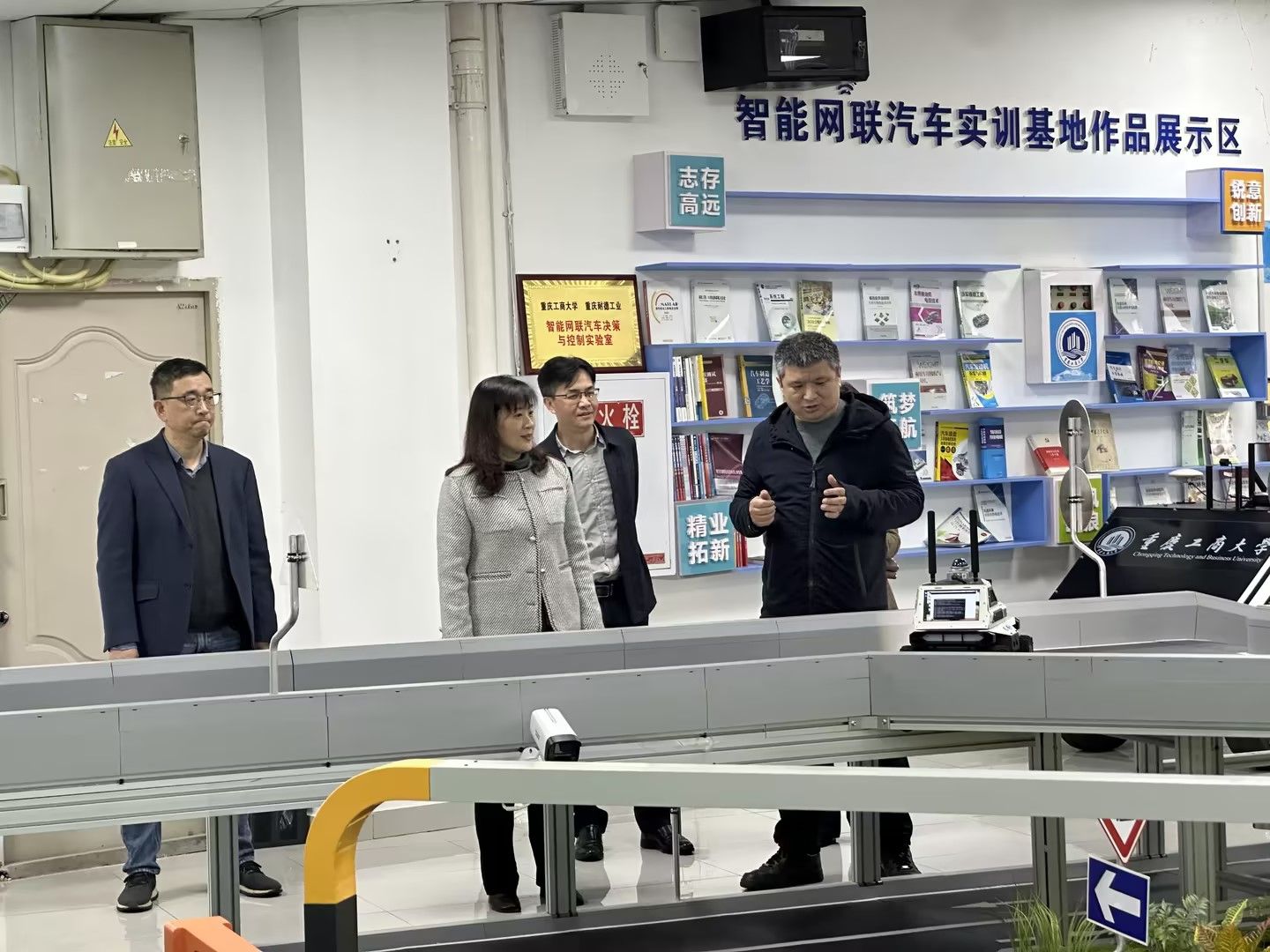 张海燕一行前往智能网联汽车实验室、机械基础实验教学示范中心,实地走访调研设备管理、安全管理等方面工作。
