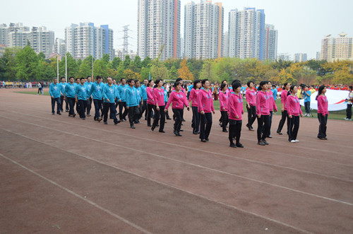 4月17日、18日,必赢3003no1线路检测中心在南区足球场举办第十二届田径运动会。校党委书记李春茹教授、校长杨继瑞教授等出席了开幕式,以及校内的25支代表队参加了本次运动会。
