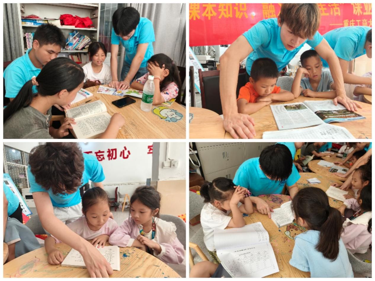 7月17日上午,在课业辅导活动中,团队成员积极与小朋友们交流。“今天数学作业的应用题,有没有哪道题还没理清呀?”“这篇课文里的比喻句,是不是不太好理解?”团队成员们轻声询问着,目光扫过每个孩子的作业本,留意着他们皱眉的瞬间——那往往是遇到难题的信号。面对孩子们的提问,团队成员们也从不敷衍,每个问题都倾心回答。在课业辅导的途中,团队成员们还发现孩子们的思维总是很令人惊奇,孩子们有着各种天马行空的想法,看待问题经常有让人意料之外的看法。