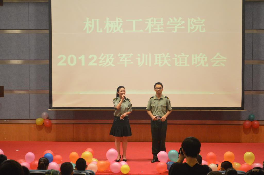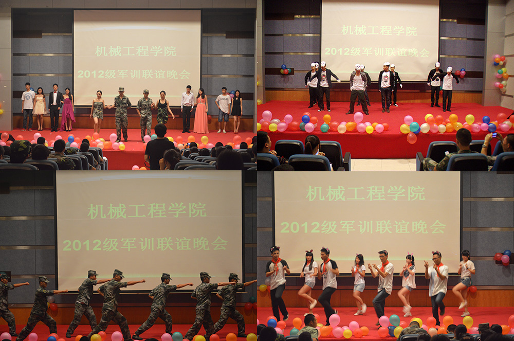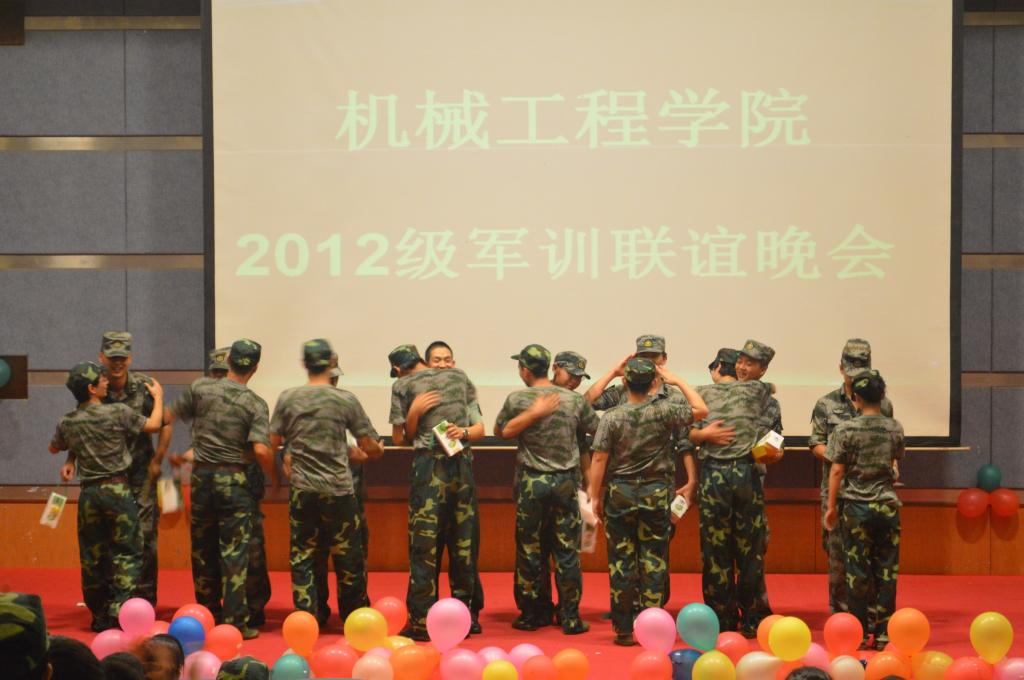 晚会在全场齐唱《中国人民解放军军歌》的洪亮歌声中拉开帷幕,来自于各连各排学员们带来了热辣的爵士舞,感人的小品《军训生活》、《革命战士》,动人的歌曲《你把我灌醉》、《相亲相爱一家人》,吴营长还携一连一排学员带来了迈克杰克逊的舞蹈以及独唱《忘情水》,激起了全场热烈的掌声。教官们带来的集体表演《军体拳》让同学们再一次感受到了军人的气魄。晚会上,各排学员代表还将自己准备的小礼物赠送给教官,表达了对教官辛勤付出深深的感谢。晚会在一曲《驼铃》的优美歌声中圆满结束。
