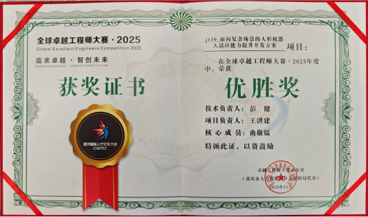 追求卓越,智创未来!11月14日,全球卓越工程师大赛·2025年度决赛在重庆悦来国际会议中心举行。经过一天激烈的角逐,我校必赢线路检测3003no1王洪建教授团队《面向复杂场景的人形机器人适应能力提升开发方案》项目分别获得本次大赛主体赛揭榜攻坚赛新一代信息技术组冠军、优胜奖。