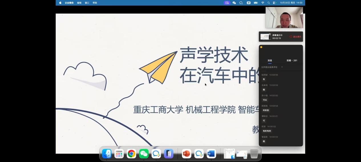 2025年10月30日,黄琳森老师在线上开展了“博士开讲啦”系列学术讲座——“声学技术在汽车中的应用”。黄老师先介绍声学的交叉性,指出其可结合多学科解决汽车噪声、振动等问题,说明技术能压缩汽车噪声分贝区间;再展示了声学技术在汽车中的实践应用,重点介绍AVAS、ASC等成果及可行性;最后总结研究结论,指出未来汽车声学将聚焦扬声器与激励器改良,强化新能源智能汽车个性化特征。本次讲座从学术理论、工程实践到未来展望层层递进,展现了必赢3003no1线路检测中心在智能车辆工程领域的科技实力以及创新能力,也为师生搭建了学术交流与创新实践的桥梁。参与师生纷纷表示,讲座内容新颖前沿,落在实处,为相关专业知识的学习与研究提供了深刻启发,对推动车辆工程领域的急速创新与人才培养具有积极意义。